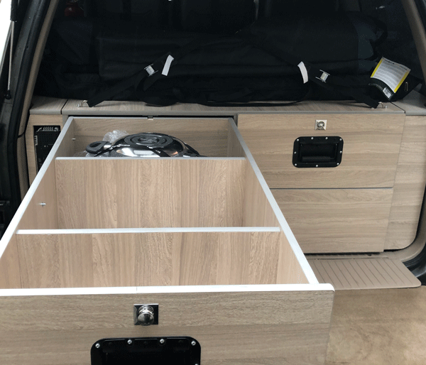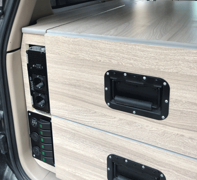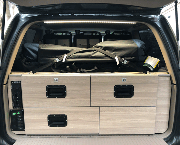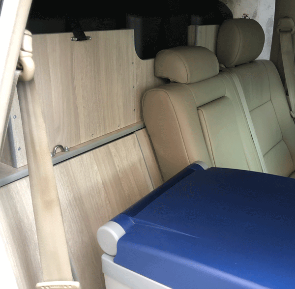 Allestimento interno vettura completamente realizzato ad hoc secondo le esigenze ed abitudini del cliente, installazione webasto, GPS, Autoradio, CB/VHF